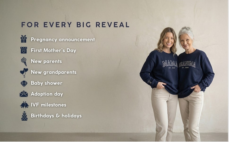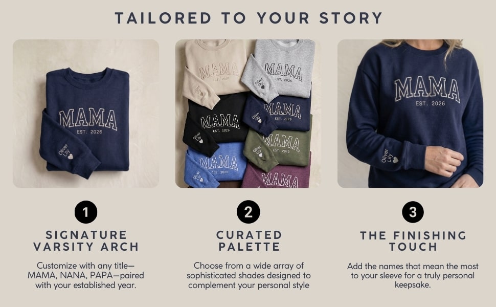 Crafted for enduring comfort and style, each crewneck features classic, collegiate-inspired typography embroidered across the chest. Whether honoring a "MAMA," "PAPA," "GRANDMA," or "AUNTIE," the title is anchored by your specific "EST." date, commemorating the year your journey began.