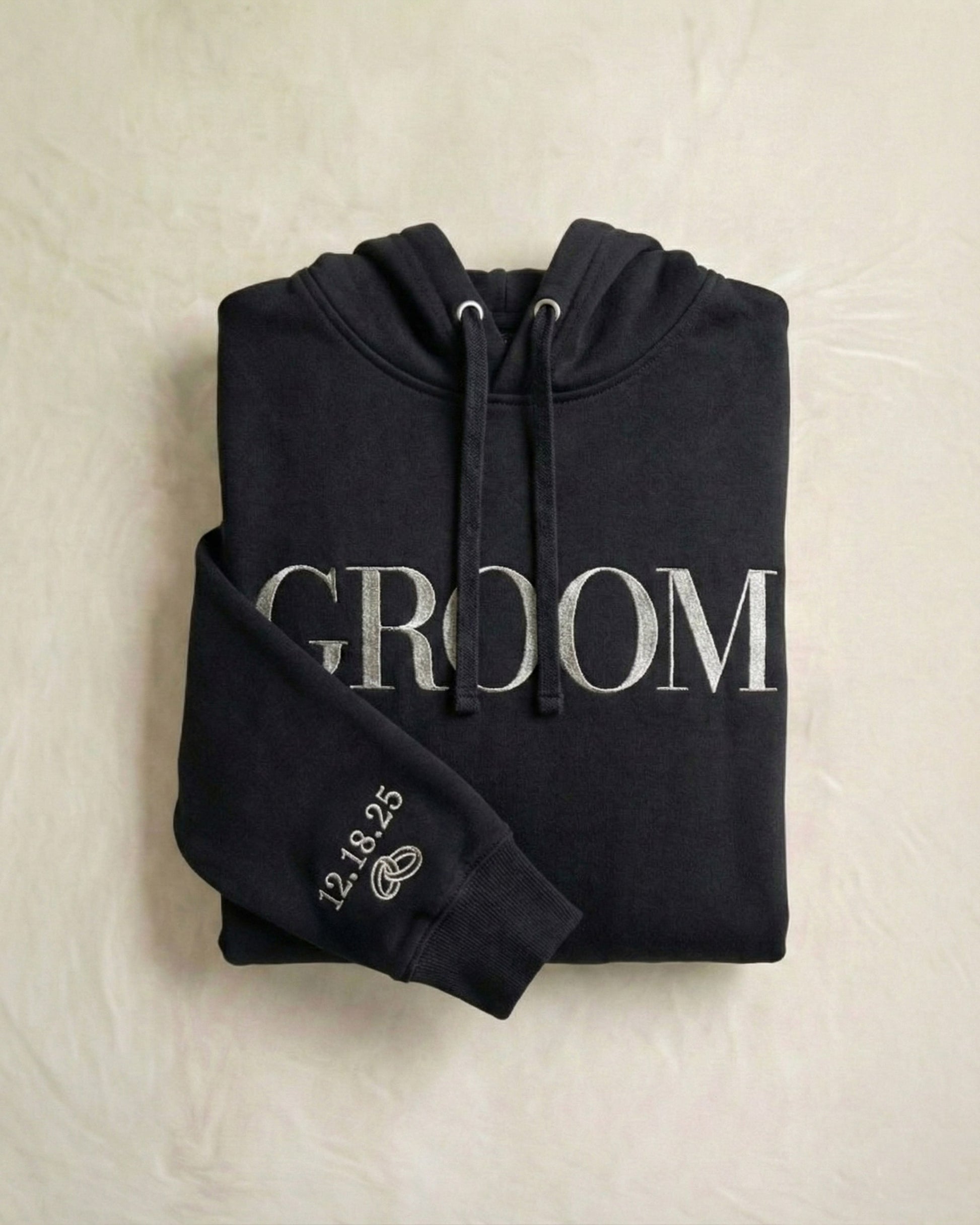 We utilize industrial precision machinery to ensure the BRIDE and GROOM lettering is rendered in a heavy, structural fill stitch that stands out against the plush fleece. Complemented by the bespoke satin stitch date on the cuffs, this bundle transforms standard loungewear into a lasting family keepsake.